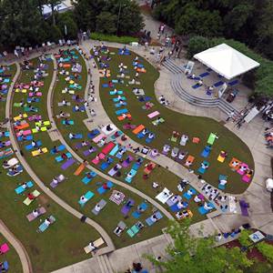 Consul D. V. Singh, with Mayor Rusty Paul and Shri Amrit Desai lit the traditional diya (lamp). Mr. D. V. Singh welcomed all and highlighted the importance of yoga and acceptability of yoga across the globe. Yoga creates an environment for universal peace, brotherhood, harmony and well-being, he said. Mayor Paul also addressed the participants: “It is a privilege to welcome Yoga Day participants to Sandy Springs for a third year. The skies have cleared and temperatures cooled, creating the perfect setting to reflect and meditate. Our city is home to a culturally diverse collection of people, many of whom we see gathered here at Heritage. I want to thank the Indian Consulate for their hospitality in bringing such a welcoming event to our community.”