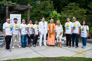 Consul D. V. Singh, Sandy Springs Mayor Rusty Paul, Gurudev Amrit Desai, and volunteers. (Photo: SFA Productions. Vinod Sharma)