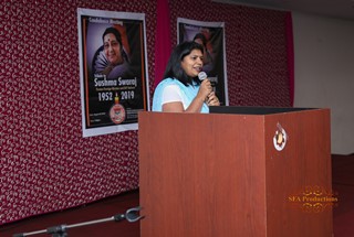 Throughout the evening emcee Radhika Suda shared the tweets for which Sushma ji was known; Radhika also rendered a beautiful poem describing Sushma Swaraj.