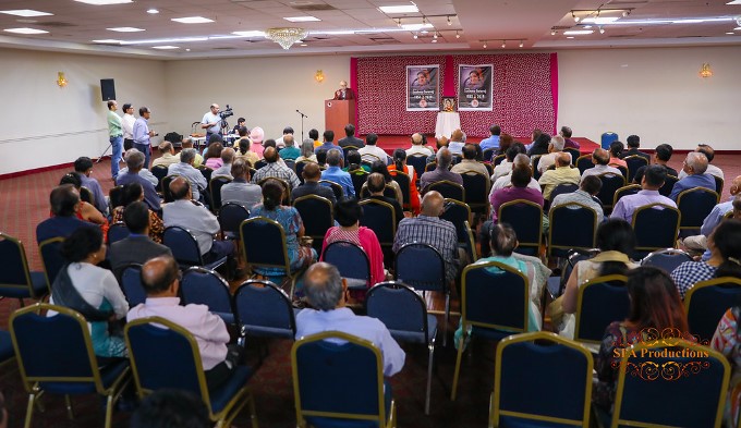 (Below) The gathering paying tribute to Sushma Swaraj. (Photo: SFA Productions)