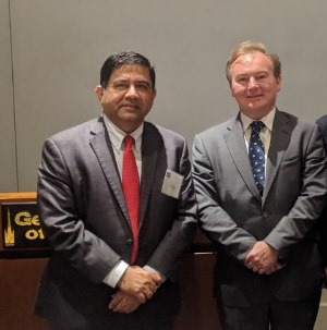 Dr. Suman Das (left), Founder/CEO of DDM Systems, Inc. gave a futuristic view of Advanced Manufacturing and 3D Printing. Using these technologies, companies can get parts and prototypes made in 1-3 days, saving millions of dollars and months of time to companies like GE and Boeing. Bioinspired Advanced Manufacturing and Micro/Nanoscale 3D printing will solve many mechanically and physically-complex biological challenges and deformities.
