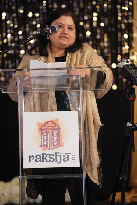 Reflecting the evening’s theme, Raksha honored unsung resilience and courage by honoring the mothers who are connected to Raksha and had recently passed away. The event also featured powerful poem recitals from two survivors, who courageously took the stage to share their journeys and inspired the community to rally behind Raksha’s mission of guiding survivors on their transformative path from silence to survival and, ultimately, to thrive. Pooja Garg, Deputy Editor of Khabar and Founder of The Woman Inc and South Asian Poetry Collective shared her moving poems on children affected by domestic violence.