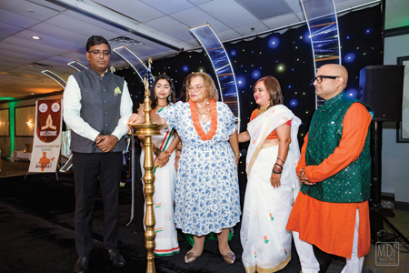 [Left] Dr. Alveda King, niece of late Dr. Martin Luther King, Jr., lights a lamp at the Vande Bharatam Dinner.