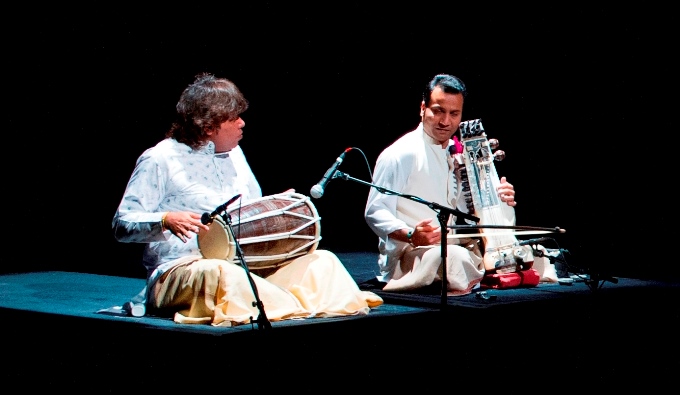 Navin Sharma on the dholak, and Sabir Khan on the sarangi. (Photo: Judy Ondrey)