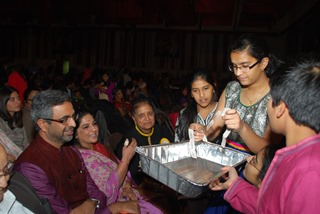 A sizable crowd enjoyed the cultural program with free snacks and free lunch provided by Shri Shakti Mandir, and mehndi and face painting by Induji and her volunteers. Ethnic clothes, jewelry, and handicrafts were sold by SaiKiranFashions.com, Mayuri Elegance, Shakti Gifts, and The Mandi. At information booths were Chetan Vyas for Obama Care, financial protection and legal shield, while representatives of Atlanta Gastro shared information on digestive health disorders. Young volunteers and students of Balvihar, Divya Ragunathan, Mugdha Daftardar, Garv Gaur, Shubhi Dhar, and Kamya Mehra sold raffle tickets, getting a really good response.