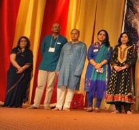 While the Indian community is a great patron of Indian dance forms, both traditional and contemporary, it is equally passionate about the music of India. Thanks to Hindi films, generations of Indians have grown up on a staple diet of love songs along with the more traditional Hindustani and Karnatic music. Hindi film music has a personality of its own, unmistakably Indian, unapologetically romantic, ignoring any regional boundary, and loved by all. So an array of Hindi film songs, solos as well as duets, followed, by talented singers Nishith Oza, Anilnath Malappan, Manoj Hanumatha, Aradhana Chaturvedi, Smita Daftardar, and Gopendar Sharma, accompanied by guitarist Sajith Shetty. The musical group Desi Rhythms of Atlanta gave an outstanding performance; one could imagine these artists in a studio in Bollywood, recording the next musical hit! Singers were Vidya Parameswaran, Madhavi Perumpalath, Geeta Khanna, Jyoti Sharma, Saras Jain, Navin Gurnaney, and Somu Ray. Last but not least, Akhil Turaga, winner of Zee TV's Dance India Dance–Little Masters of North America, presented an electrifying dance, truly contributing the “grand” in the “grand finale” of the show.