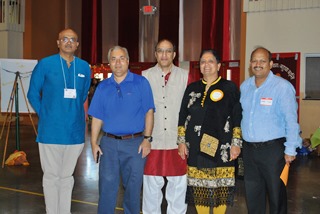 Emcees were Sabitha Venugopal and two young graduates of Balvihar, Aadithya Ragunathan, a bio-medical engineering student at GaTech, and Eesha Oza, a medical student at Georgia Regents University. The cultural program started with prayers recited by Balvihar students and VHPA volunteers, followed by a classic Kathak piece by Leera Rawal, a disciple of Pandit Birju Maharaj and Smt. Kumudiniben Lakhia. Eesha Oza performed a solo dance representing her Indian home state of Gujarat. The emcees introduced each item with interesting information about the state of India being represented, along with some fun trivia questions to engage and test audience knowledge about India. The show continued for the next 5 hours with scintillating dances and melodious songs.