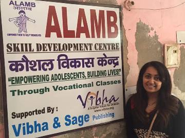 At left: Pramod Sajja visiting Devnaar Foundation for the Blind, and Alpa Amin’s visit to Alamb in Delhi.