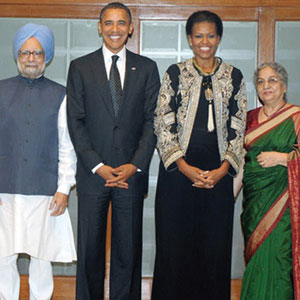 It was an evening when Bollywood and Obama charmed each other. At Prime Minister Dr Manmohan Singh’s private dinner for US President Barack Obama and his wife, Michelle, the film fraternity was represented by three eminent personalities. Aamir Khan, dressed in an off white kurta and churidar, Shabana Azmi in an orange Kanjeevaram saree with marigold in her hair and Javed Akhtar in a black sherwani, were among the 70 privileged guests at the elegant do. A beaming Shabana later said that “Obama told Javed that he was indeed lucky to have me as his wife!” The couple, on their part, were impressed with the way “Obama wears his power lightly.”