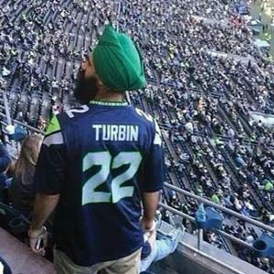 A Sikh man wearing a green turban got plenty of attention and good-natured laughs when he attended the Seattle Seahawks’ opening game wearing a team jersey with the name “Turbin” at the back.
