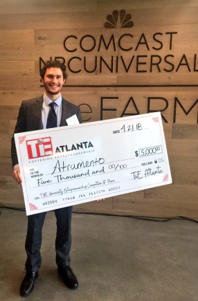 (Right) In the college division, Georgia Tech startup Atramento, which discovered a new way to innovate semipermanent tattoos, won $5K to fund their startup.