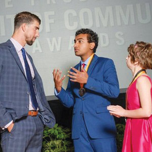 Amal Bhatnagar (center) of Northview High School, Duluth. and Kelsey Norris of Bonaire (pictured with Olympic gold medalist Michael Phelps on the left) were named two of America’s top 10 youth volunteers of 2017 by The Prudential Spirit of Community Awards during the program’s 22nd annual national ceremony in Washington, D.C. Each received a personal award of $5,000, engraved gold medallions, crystal trophies for their schools, and $5,000 grants for nonprofit charitable organizations of their choice.