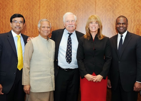 Bhuiyan worked with 2006 Nobel Peace Laureate Prof. Muhammad Yunus, Ted Turner, Laura Turner Seydel, Atlanta Mayor Kasim Reed (all pictured at right), The Carter Center, The King Center, and others to bring the Summit to Atlanta.