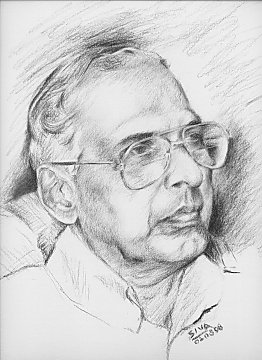 (Left) Prof. P. V. Rao - Charcoal on paper, 12" x 16"
