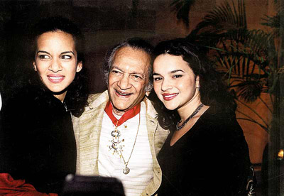 Anoushka Shankar (left) and Norah Jones (right) with their late father Ravi Shankar.