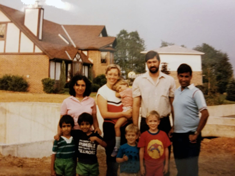 (Left) The young Satyal brothers in 1985 with their babysitter Lisa Abney.