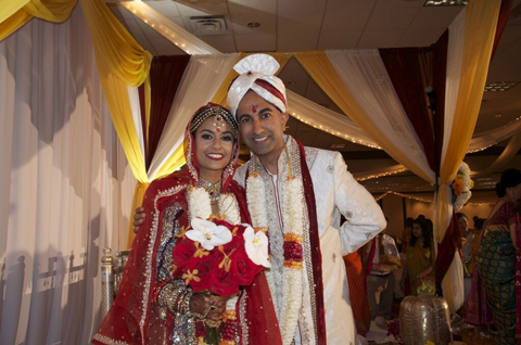 (Left) Rajiv Satyal, with his wife Harsha, at their wedding in 2015.