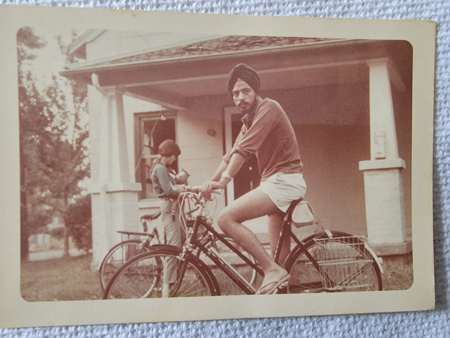 [Right] Sahni was provided a bicycle to commute around the college campus.
