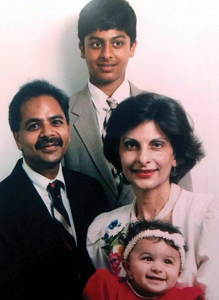 [Left] Dr. Gulshan Harjee with her husband, Dean Delawala, and children Faisal and Shahla—