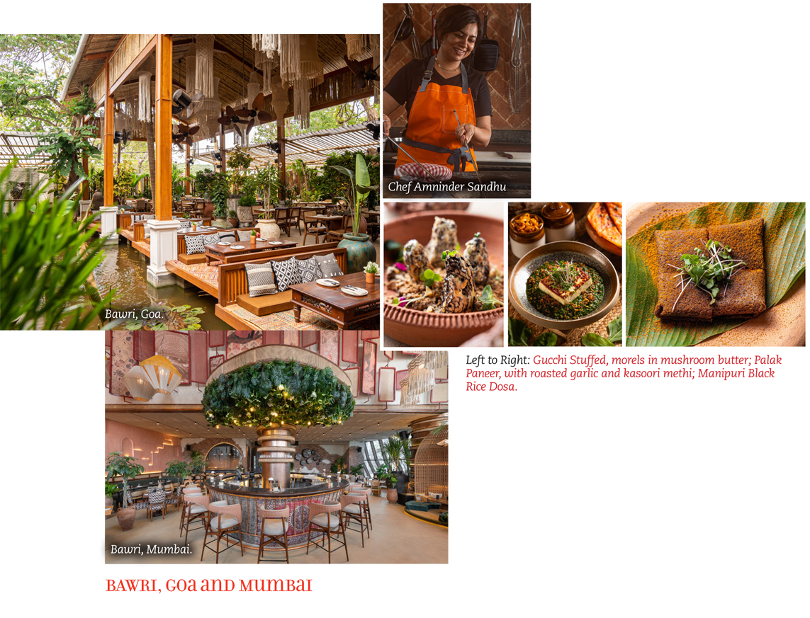 In the village of Assagao in north Goa, which is home to luxury villas across winding roads, as well as in the hustle-bustle of the corporate enclave of Bandra Kurla Complex, Mumbai, Bawri is quietly redefining Indian fine dining by going back to its roots to revive the forgotten soul of Indian cuisine. Hence, favorite classics like butter chicken and a quintessential Punjabi breakfast of poori bhaji, chhole kulche, and stuffed parantha are its popular offerings.