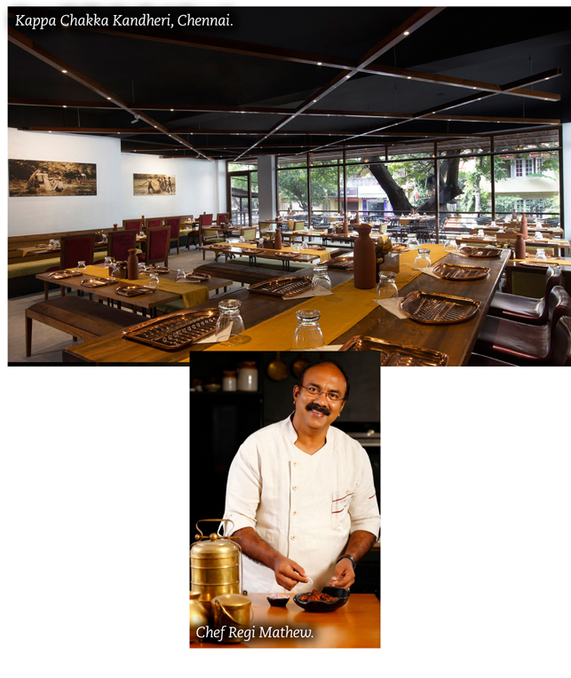 Founded by Chef Regi Mathew, a veteran of Taj hotels, along with partners John Paul and Augustine Kurian, the restaurant focuses on Kerala’s rich gastronomic heritage. “I wanted to revive undocumented recipes, particularly those from mothers’ kitchens, which lack formal documentation. Kappa Chakka Kandhari (KCK) is a tribute to the food I grew up eating— backyard ingredients like tapioca, jackfruit, and Kandhari chillies.”