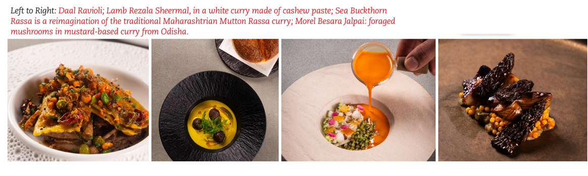 “We have tried to bring home-cooked and tribal community dishes to a sophisticated fine-dining setting,” says Kasuganti. Contemporary techniques like sous vide and deconstruction is used to elevate traditional fare while preserving authentic flavors.