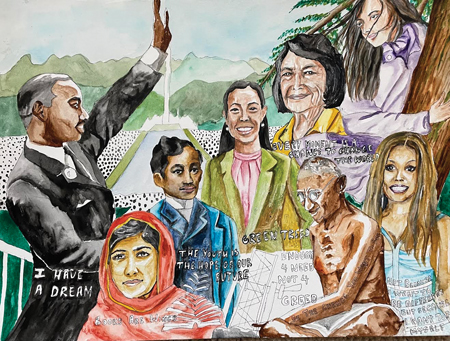 She, along with Sabrina Davidson, a visual artist from San Diego State University, wrote to the school authorities and engaged the kids to create a mural that speaks to them. Along with the school, they decided to narrow down what kids chose and came up with a list. The final mural saw pictures of Mahatma Gandhi; Nobel Prize laureate Malala Yousufzai; Cao Vinh Thinh, an environmental activist from Vietnam; American civil rights activist Dolores Heurta; and Julia Butterfly Hill, co-founder of the Circle of Life Foundation and committed to transforming human interactions with nature; and many others.