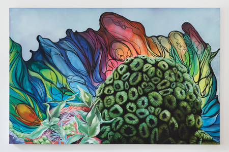 Mahimtura Folmsbee sometimes sees humor in the way Indian artists are expected to showcase their culture through their works. She says, “My work is a bridge between science and art, and a lot of it shines a light on an essential natural resource—marine life. It confuses curators or gallerists who expect my work to be more ‘Indian.’ I mean, I am a maximalist artist, my color palette is vibrant, the clothes I wear to art openings are Bollywood-inspired, and my work predominantly features water because I grew up seeing the ocean in Mumbai. Even sea fan coral reefs depicted in my art are a variety found off Mumbai’s coastline. Ironically my work couldn’t be more Indian if one pays attention.”