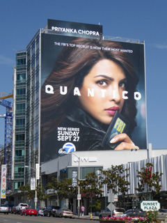 All out American: Priyanka Chopra in Quantico is seen here on a giant billboard on Sunset Plaza in Los Angeles.