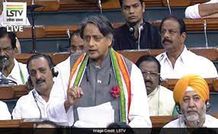 [Left] As a parliamentarian in India, Tharoor is dismayed that most bills are pushed through without enough scrutiny. (Source: Lok Sabha)