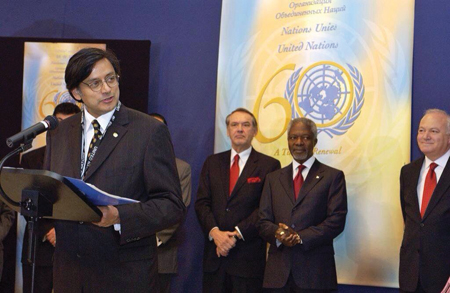 [Right] Tharoor was the Under-Secretary-General when he left the UN.