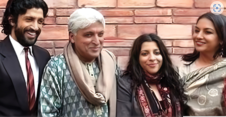 [Top] A family steeped in filmdom. Azmi with husband Javed Akhtar and his children from his first marriage to Honey Irani, Farhan and Zoya.