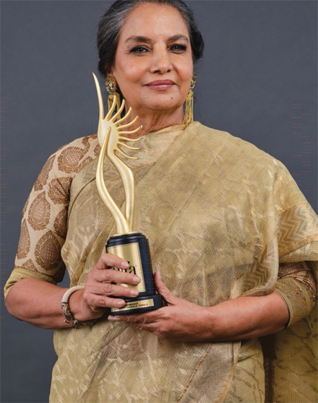 [Right] Rocking the IIFA award for her role in Rocky aur Rani ki Prem Kahani (Photo: Instagram @azmishabana18)