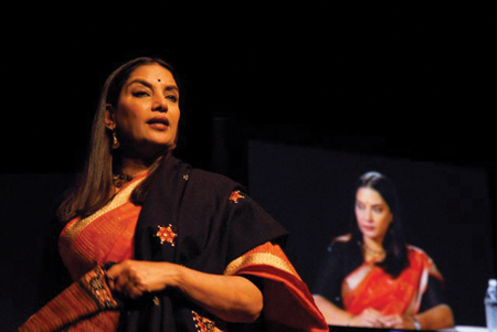 [Top left] In Fire, the first of Deepa Mehta's Elements trilogy, Azmi takes on taboo topics like lesbianism and patriarchy. [Top right] In Broken Images—Shabana Vs. Shabana, she mesmerized the audience with her solo performance, transporting them into the innermost reaches of the protagonist's mind and heart.
