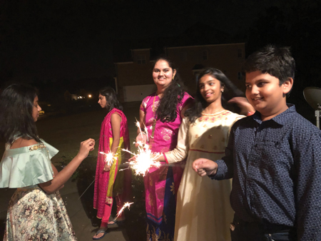 We attend fetes that bring together our Hindu, Muslim, Christian, Jewish, and atheist friends alike. Someone supplies the fireworks that they have hoarded since the Fourth of July, setting the sky ablaze. We each catch a flame from another’s sparkler, praying that this chain of light will spread awareness and understanding, dispelling ignorance and ill-will for generations to come.