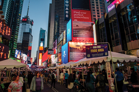 The celebration is listed on all tourism calendars for the city. Over 400,000 pedestrians pass through Times Square every day and for many of them, it is their introduction to Diwali, a word they could hardly pronounce a few years back. The sparkling neon lights of Times Square highlight the Diwali symbol of the diya. Says Neeta Bhasin, “Only two major festivities are celebrated at Times Square—the ball drop on New Year’s Eve and Diwali!”