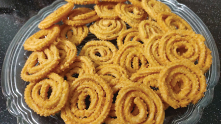 [Left] Chakkuli, the savory snack that is one of the staples in Deepavali.