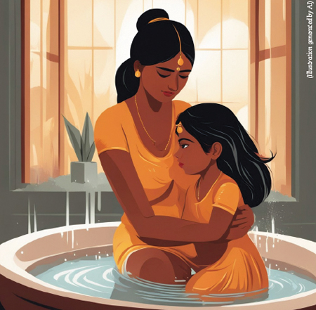 [Right] “As a child, I dreaded the oil bath tradition,” says the author.