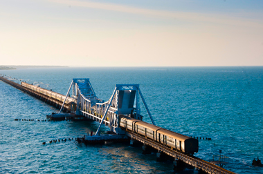 (Right) The 2nd longest sea bridge, Pamban Bridge. (Photo: Tamil Nadu Tourism)