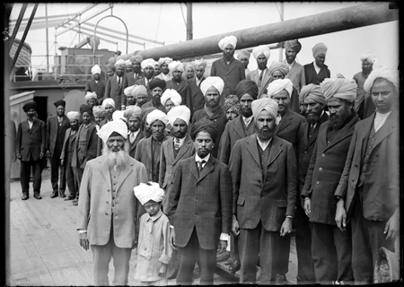 Some of the Sikhs on Komagata Maru. The ship was not allowed to dock, and after several months of ineffective legal battles and political demonstrations, a Canadian Navy ship escorted Komagata Maru out to sea to begin its return voyage to India.