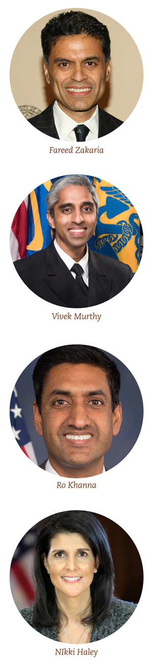 Amongst the luminaries gracing the cover are demigods of the tech world—Kanwal Rekhi, Vinod Khosla, Shantanu Narayen, Satya Nadella, Suhas Patil, and Nikesh Arora. Others are: America’s favorite new-age guru, Dr. Deepak Chopra; Grammy-winning musician and business dynamo, Chandrika Tandon; renowned media pundit, Fareed Zakaria; former U.S. Surgeon General, Dr. Vivek Murthy; Congressman Ro Khanna; former U.S. Ambassador to the UN as well as former Governor of South Carolina, Nikki Haley; former Principal Deputy Solicitor General of the United States, Neal Katyal; and the noted doctor-writers: Abraham Verghese, Siddhartha Mukherjee, and Atul Gawande.