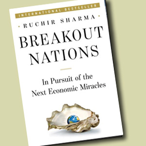 Ruchir Sharma calls his best-selling debut, Breakout Nations: In Pursuit of the Next Economic Miracles (W.W. Norton), an economic travelogue. He takes the readers on a tour of emerging markets, ranging from the BRIC nations (Brazil, Russia, India, China) to smaller players like Turkey, South Africa, Malaysia, Poland and Mexico. A frequent contributor to The Wall Street Journal and The Economic Times, Sharma is head of Emerging Market Equities and Global Macro at Morgan Stanley. For a week every month, Sharma visits one developing country.