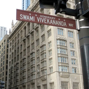A street sign near the Art Institute of Chicago, marking a busy section of Michigan Avenue, reads: Swami Vivekananda Way. It commemorates a famous speech that he delivered 130 years ago at the World’s Parliament of Religions. This event—coinciding with World’s Columbian Exposition in Chicago—was held at the Art Institute, then known as the Permanent Memorial Art Palace. On September 11, 1893, Swami Vivekananda, in an opening that brought a two-minute applause, said, “My dear brothers and sisters of America . . .” In short but passionate remarks that mostly introduced Hinduism (Vedanta, mainly) to Americans, he denounced fanaticism and called for religious tolerance and unity. “His unprecedented success opened the way for the dialogue between Eastern and Western religions,” reads in part a plaque that was installed outside the museum’s Fullerton Hall, where Swami Vivekananda had addressed his audience.