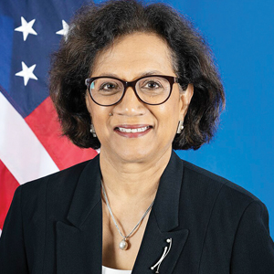 Geeta Rao Gupta was sworn in by Kamala Harris as Ambassador at Large for Global Women’s Issues at the State Department. The first woman of color to hold this position, Rao is a first-generation immigrant who was fully educated in India. A recipient of several honors, including Harvard’s Anne Roe Award, Rao, who earned a PhD from Bangalore University, has held senior positions at the UN Foundation, UNICEF, and ICRW.