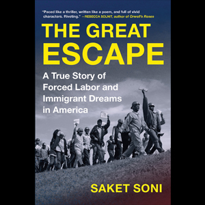 The Great Escape (Algonquin Books), by Saket Soni. This complex true story, touching on migration, natural disasters, greed, forced labor, mistreatment, economic injustice, inequality, and organized resistance, will be familiar to some readers, at least vaguely. What this lauded book does is flesh it out, and the author is none other than the lead participant. Soni, a community organizer, was just 28 when he got a call in 2006 from a migrant worker stuck in Mississippi. He was one of 500 workers recruited from India by Signal International, though not for IT jobs. They were pipe fitters and other oil rig workers, brought to the U.S. with false promises and confined to a prison-like camp in unsanitary conditions. These trafficked workers had to pay $20,000 each for their passage. They ultimately won their freedom, but only after a long and difficult battle, which included a weeks-long hunger strike by 60 workers. Soni is the founder of Resilience Force. “Right till the end, this extraordinary work is as absorbing as a great novel,” according to Amitava Kumar.