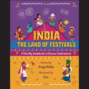 India – The Land of Festivals (Apni Heritage), by Anuja Mohla. Illustrations by Gowthami Maruthupandiyan. A physician by training, Mohla, who immigrated to the U.S. as a teenager, launched Apni Heritage in 2021 after she became a mother. This new book (for kids aged 6 to 9), the first volume in a planned series, provides an eye-catching guide to 25 Indian festivals celebrated across the world. They cover six major religions.