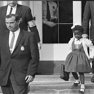 (Left) 1960: Ruby Bridges, one of the first black children to go to a white elementary school after desegregation, is being accompanied by U.S. Marshals.