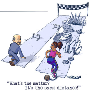 Imagine if I were black and in those same circumstances. Does the woman stop to help? Will the next car stop, or the one after? Will I wait hours in the shivering cold for assistance? Will the white locksmith I call wish to help a black person after sunset on a quiet street? Being black in that situation would be a completely different experience.