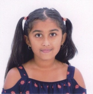 (Left) Meher Sanghavi, age 7, the first place winner in Group A (ages 5-8 years).