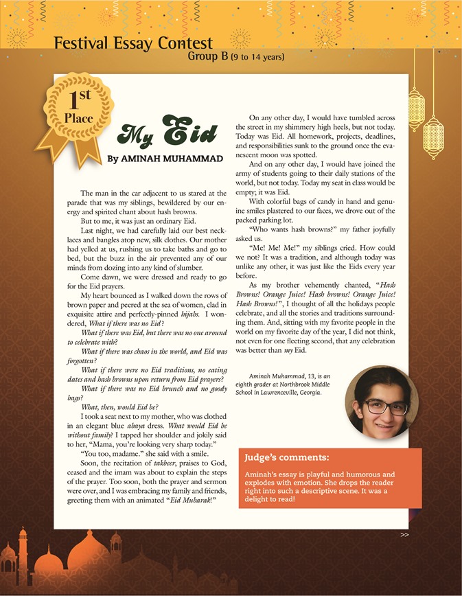 First Place: AMINAH MUHAMMAD (“My Eid”), Lawrenceville, GA